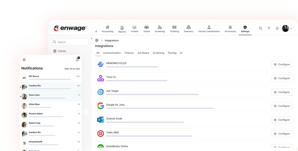 Enwage integrates effortlessly with your existing systems, making general liability management a seamless part of your HR operations. We support a variety of integrations designed to enhance your productivity and keep your data interconnected.