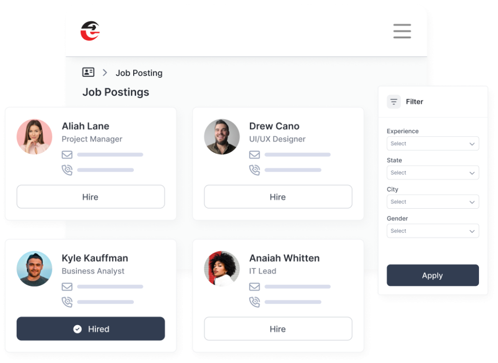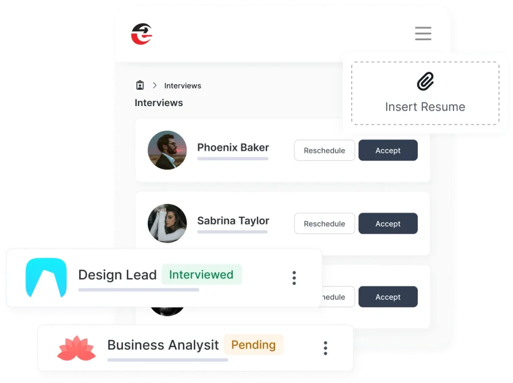Manage all applicants in one centralized place, with easy access to resumes, contact info, and interview notes.
